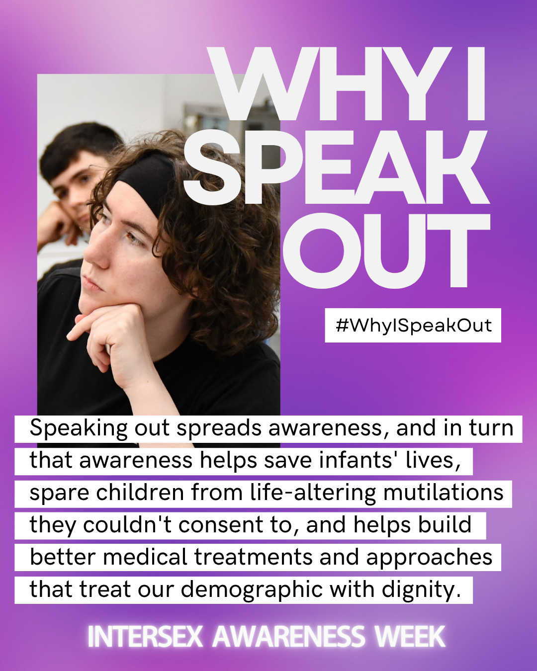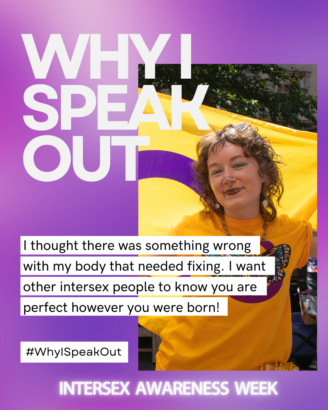 October 26th was Intersex Awareness Day, observed annually on the anniversary of the first organized demonstration of intersex folks and their allies in Boston, MA at the annual conference of the American Academy of Pediatrics in 1996. They publicly denounced non-consensual genital surgeries on intersex infants & demanded respect and bodily autonomy from the medical community for intersex folks. Through the work of outspoken intersex individuals, protestors, and activists, we've made some headway into the fight for the rights & dignity of all intersex persons—but there's still plenty of work to be done.