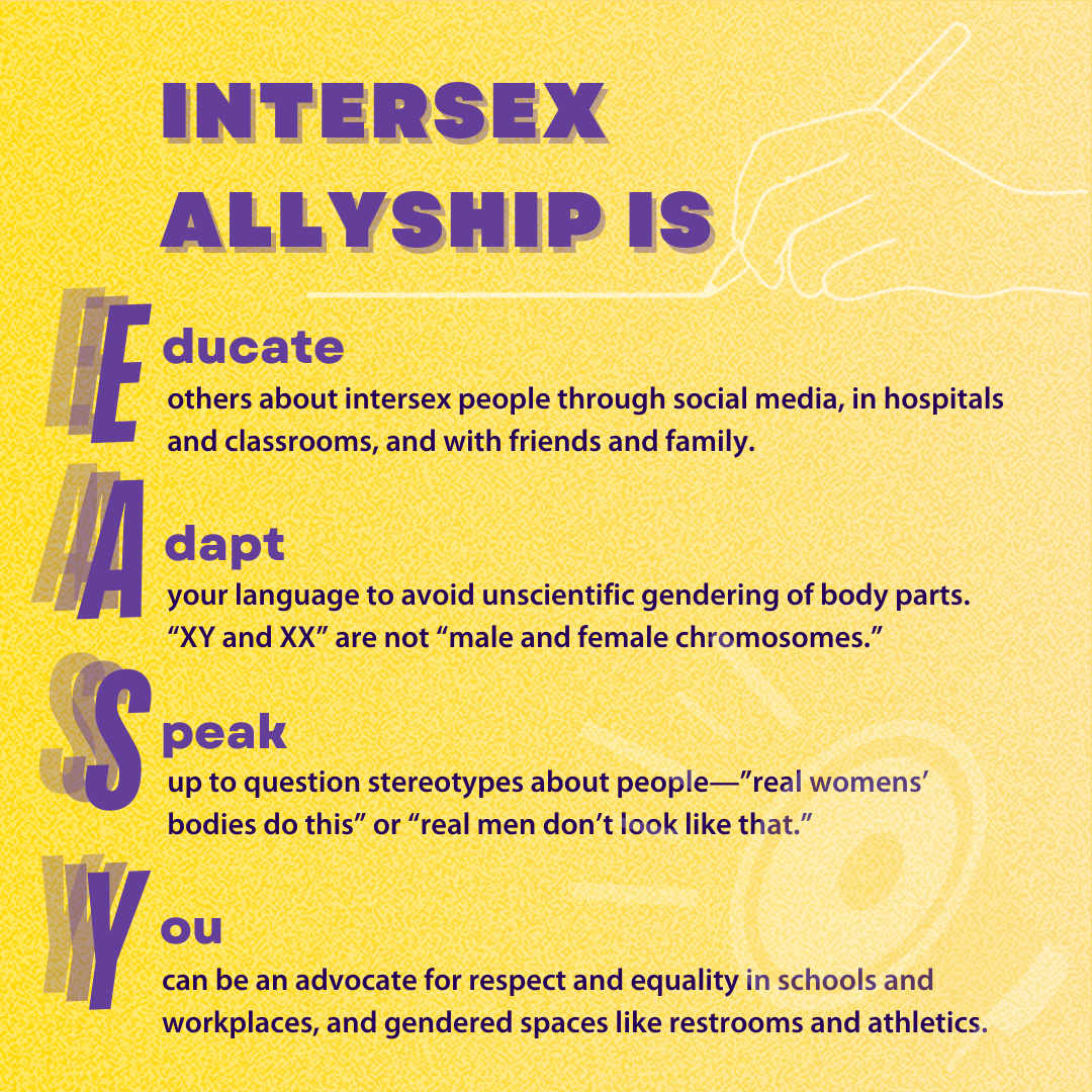 To learn more, checkout the advocacy group interACT for a variety of resources, including a self-advocacy toolkit for intersex people to utilize when interfacing with medical staff (PDF linked below as well):
