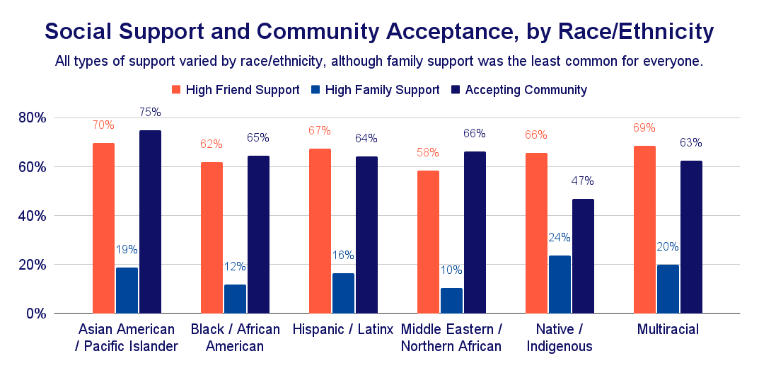 Statistics & Graphics from Friends, Family, and Community: Social Support and the Health of Transgender and Nonbinary Young People of Color (2025) by The Trevor Project